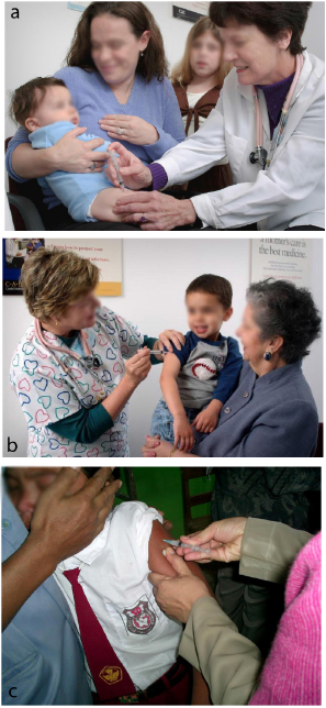 a. Figure of infants/toddlers receiving an injection in a leg.